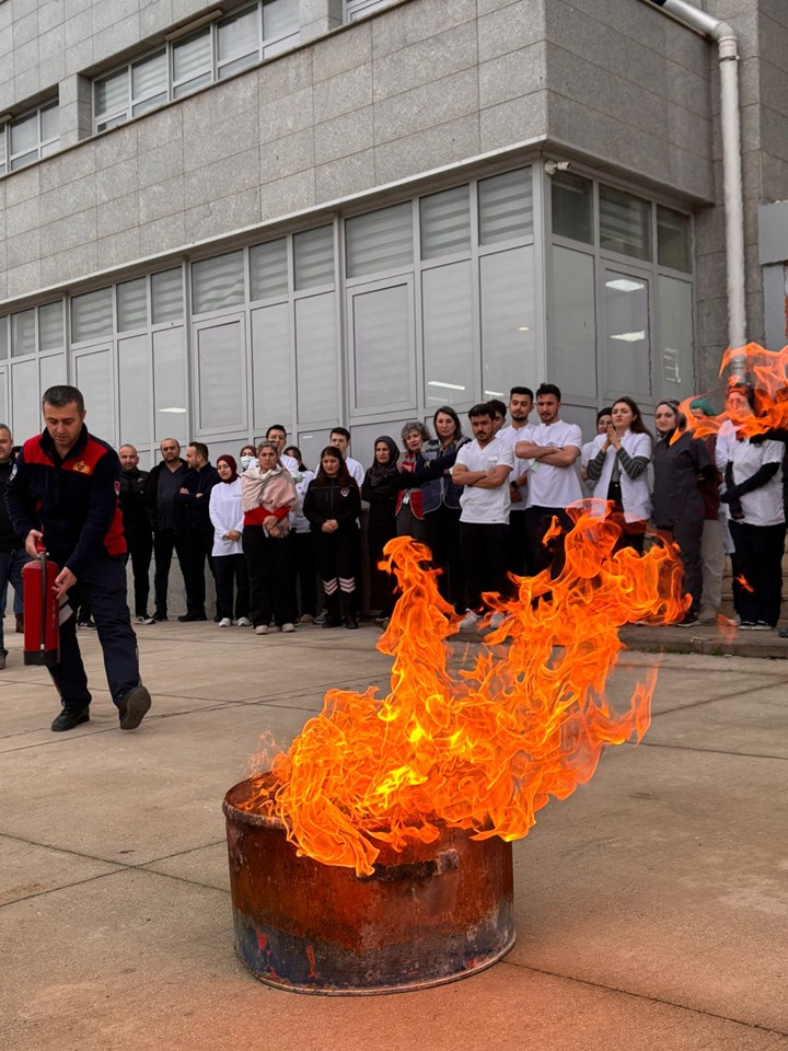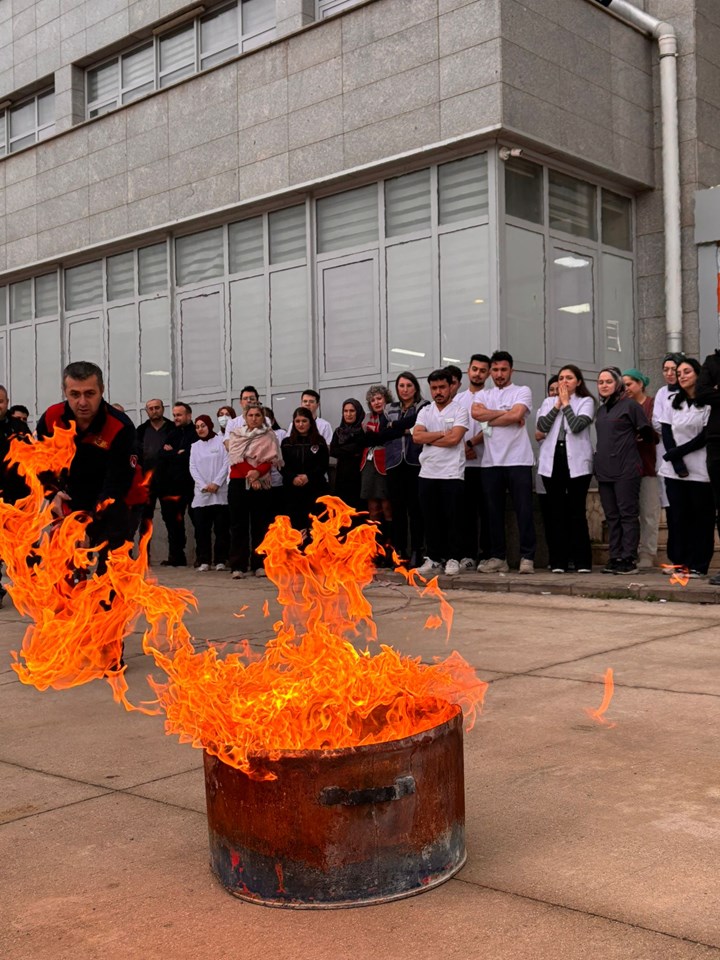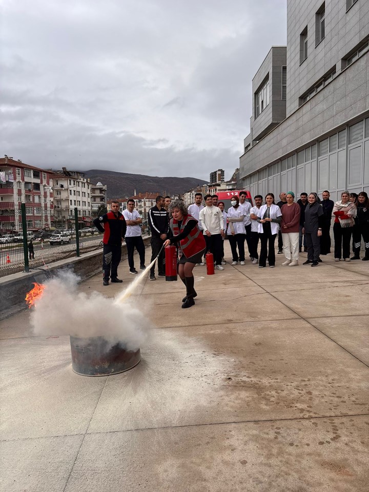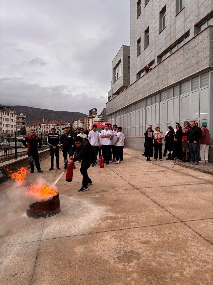 Tatbikatın ardından Tokat Belediyesi İtfaiye Müdürlüğü tarafından personele ve öğrencilere yönelik yangın söndürme eğitimi verildi. Eğitimde yangının çıkış nedenleri, yangın sınıfları, söndürme yöntemleri ve farklı türdeki söndürücülerin doğru kullanım teknikleri detaylı bir şekilde anlatıldı. Uygulamalı gösterimle katılımcılar yangın söndürücü kullanma fırsatı da buldu.